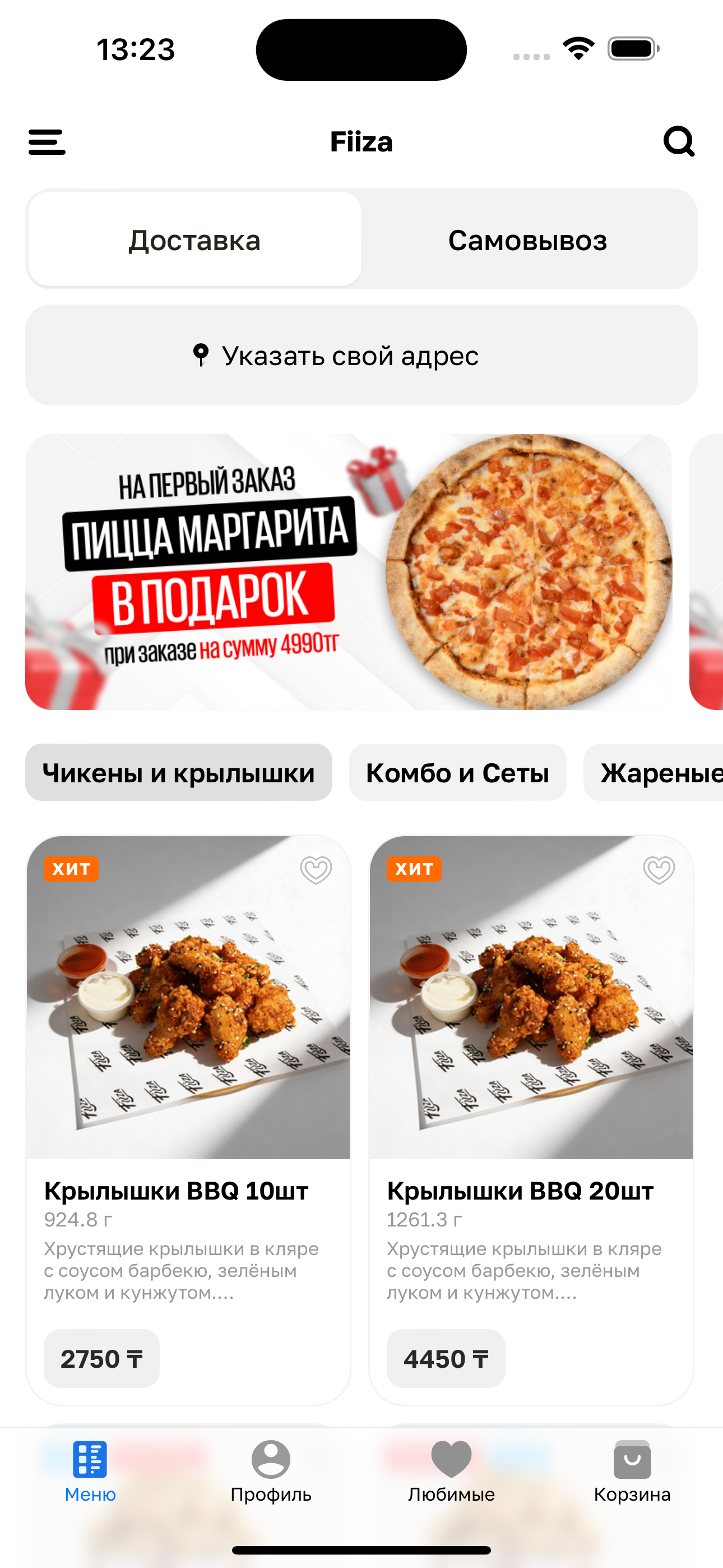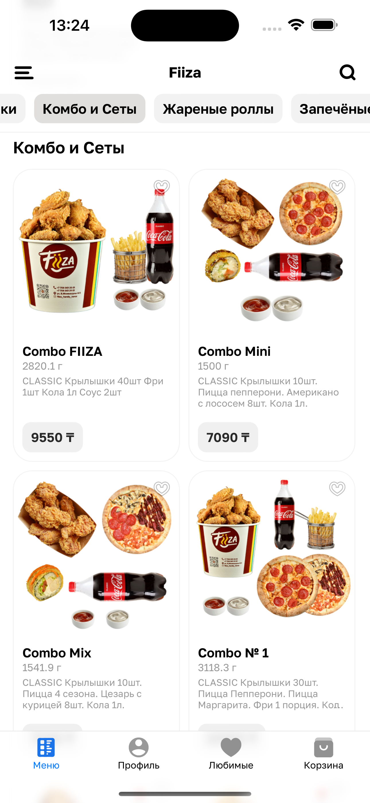 CLASSIC Крылышки 10шт. Пицца 4 сезона. Цезарь с курицей 8шт. Кола 1л.
