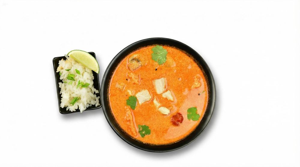 Паста том-ям, Шампиньоны, Филе, Кокосовое молоко, Помидоры черри.