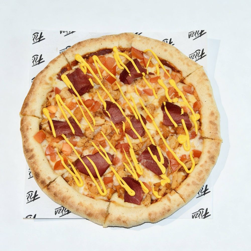 Сыр творожный, Соус томатный, Сыр моцарелла, Стрипсы, Помидор, Соус сырный.