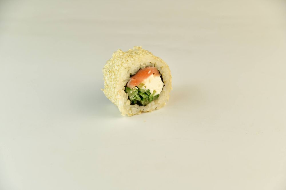 Рис, Нори, Сыр творожный, Лосось, Огурцы, Кунжут.