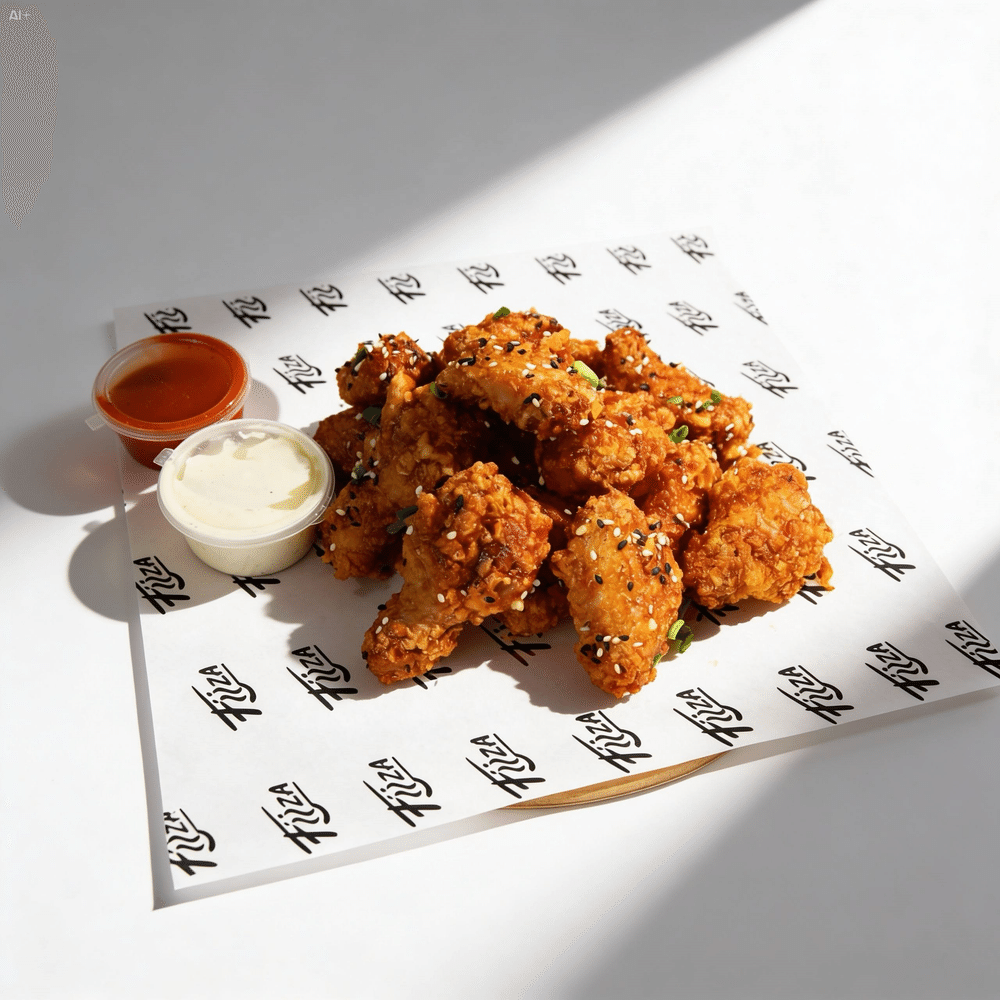 Хрустящие крылышки в кляре с соусом барбекю, зелёным луком и кунжутом. Насыщенный и ароматный вкус в каждом кусочке.