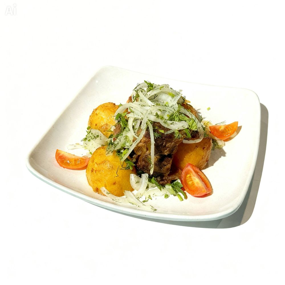 Говядина, Картофель, Лук, Кинза, Укроп, Соль.