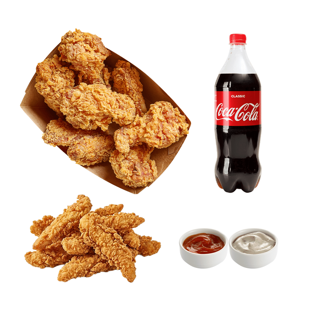 CLASSIC Крылышки 10шт. Стрипсы 10шт. Кола 1л. Соусы 2шт.