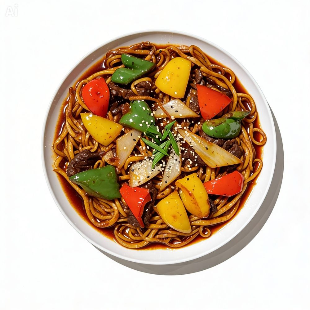 Лапша, Капуста пекинская, Болгарский перец, Томатная паста, Лук.